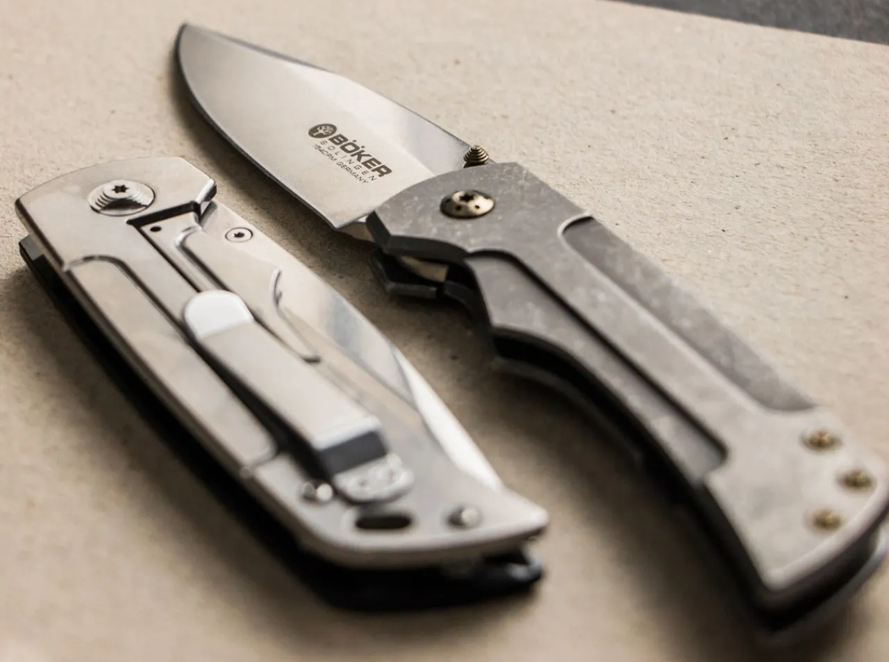 Steve Kelly From Montana Is Not Only A Consummate Knife Maker. His Titanium Framelocks Represent The Peak Of Craftsmanship, And His Gulo Truly Adds Value As A Boker Series Knife. Slim Yet Extremely Strong Titanium Liners Support The Powdered Metal, Ball-Bearing Hinged Cpm-154 Blade, Turning The Gulo Into An Ideal Everyday Companion. But Steve Kelly‘S Other Source Of Business – Ti-Connector – Consists Of Fabricating Titanium Screws And Parts For Custom Knife Making. Many Of The Us Custom Knifemakers Have Now Started To Use Titanium Screws From Steve Kelly, And The Series Model From Boker Also Features A Blade Bearing And Handle Screws, Thumb Stud And Spacers – All Made From Titanium By Steve Kelly. The Entirely Unique Appeal Of This Premium Hardware Gives The Gulo A Particularly Refined Visual Touch That Is Further Underscored By The Exclusive Bronze-Colored Anodizing. We Are Therefore Raising The Bar For The Exclusivity Of The Knives From Our Solingen Manufactory To A New Level By Giving Users And Collectors Alike An Absolutely Exceptional Knife.