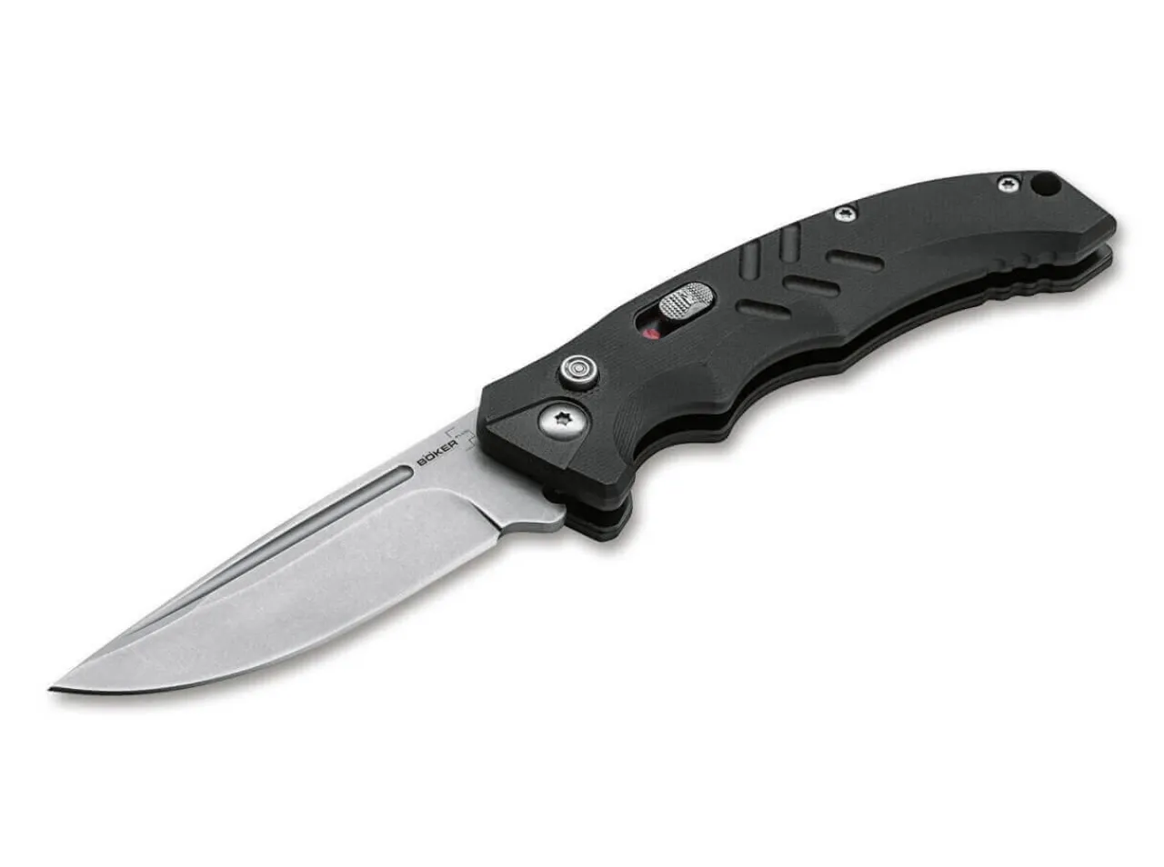 Designed As A Tactical Automatic Knife, The Boker Plus Intention Is Not Only Convincing In The Field, But Also Copes Effortlessly With All The Cutting Tasks That Arise In Everyday Life. Pressing The Push Button Releases The Stonewash Blade Made Of D2, By The Tension Of The Spring Behind It, It Then Folds Open Automatically. A Clean Latching Slide Lock Further Secures The Knife Against Accidental Release. The Ergonomically Shaped Handle Is Made Of Textured G10, Ribbing In The Area Of The Thumb Rest And The Pronounced Finger Recess Further Improve The Hand Position. With Lanyard Loop And Clip (Tip-Down).