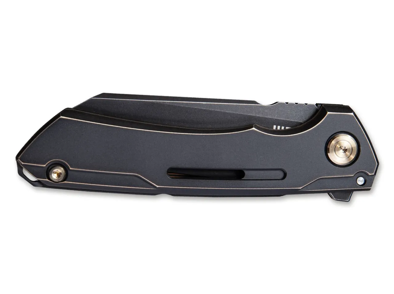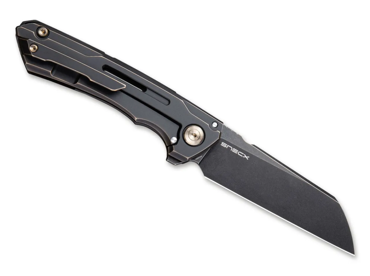 The We Knife Mini Buster Bronze Demonstrates Impressively That A Simple Design Does Not Have To Impact On Performance. Its Powder-Metallurgical Sheepfoot Blade Made From Cpm 20Cv Offers Superior Edge Retention And Deploys Directly With The Help Of The Flipper. The Framelock Is Stylishly Framed In The Elegant Titanium Handle And Allows Safe Handling. The Shimmering Bronze Color Gives The Knife A Special Touch. With Clip (Tip-Up) For Pocket Attachment And Lanyard Hole.
