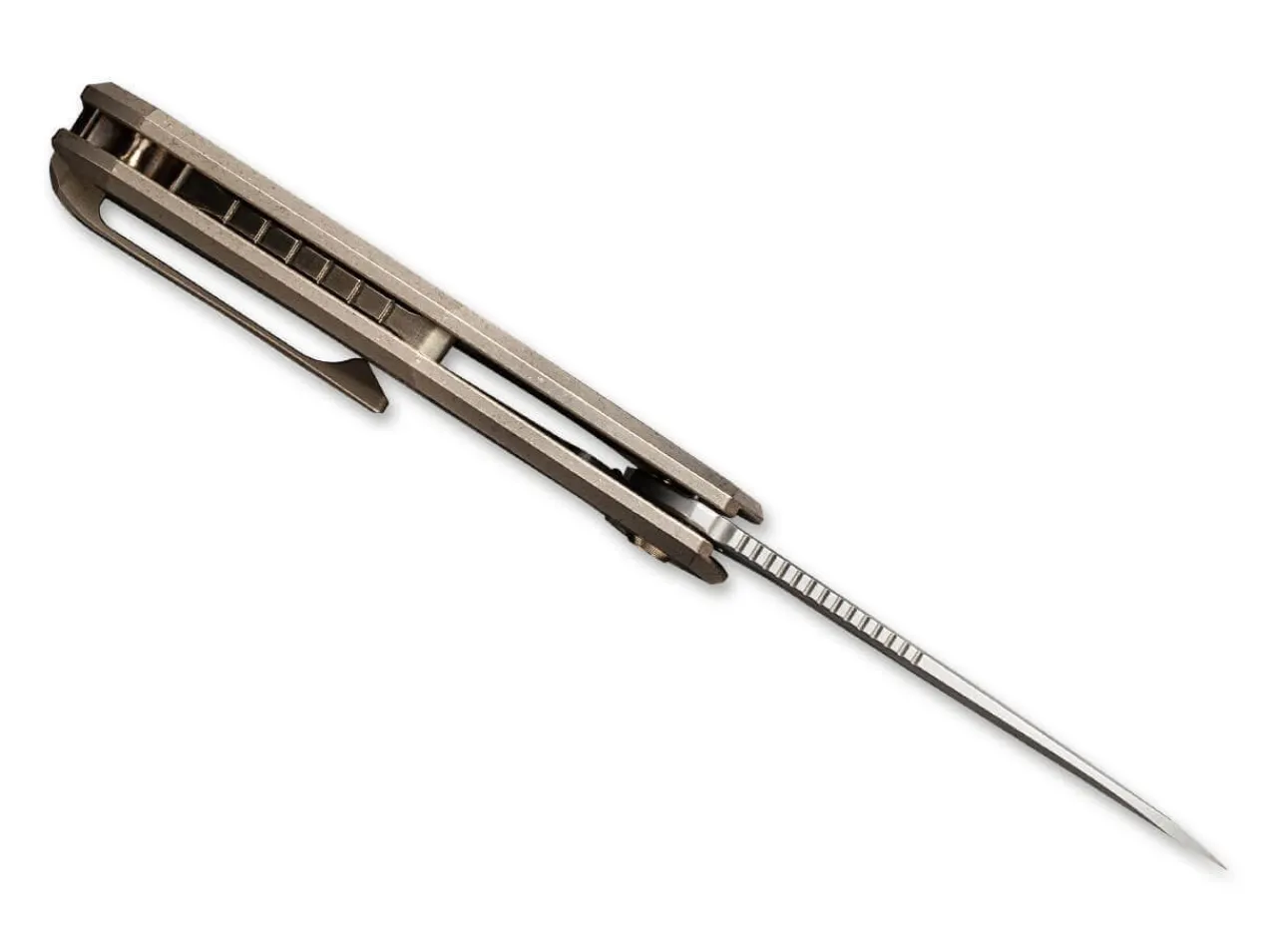 The We Knife Mote Bronze Convinces With Its Cutting Blade Made Of Powder Metallurgy Cpm-S-35Vn And The High-Quality Titanium Handle With A Framelock Lock. Thanks To The Flipper Opening, The Edc Knife Is Ready For Everyday Cutting Tasks. With A Clip (Tip-Up/R).
