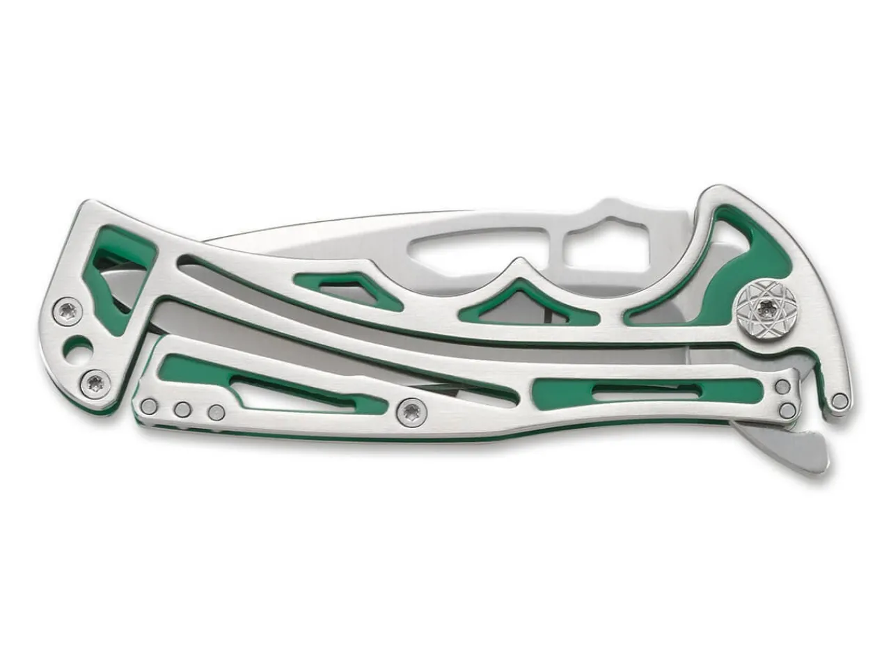 Brian Tighe Provokes With The Avant-Garde Design Of The Crkt Nirk Tighe Ii And Turns The Knife World Upside Down. The Numerous Recesses On The Ball-Bearing 8Cr14Mov Blade And The Handle Reduce The Weight Without Sacrificing Functionality. The Knife Opens Either By Flipper Or Thumb Hole And Is Locked With The Patented Klecker Lock. The Green Colour Accents On The Ergonomic Stainless Steel Handle Underline The Modern Claim Of The Knife And Ensure An Unmistakable Look. With A Lanyard Hole And Clip (Tip-Up/R).