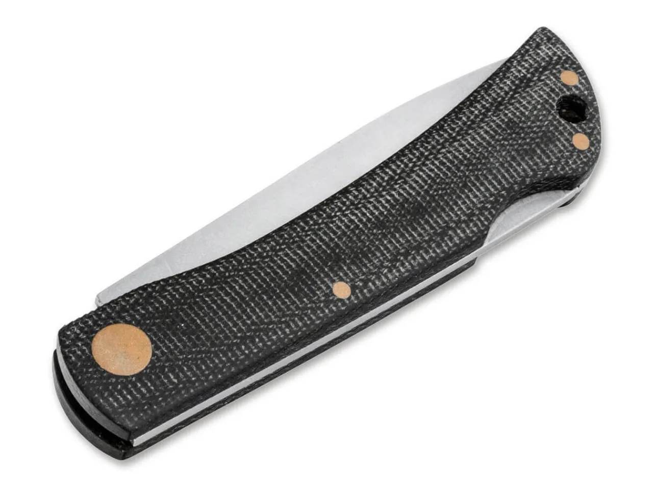 The Rangebuster Is A Traditional Pocket Knife That Was Developed As Early As The 18Th Century In The Usa For Use In Agriculture. The Light And Comparatively Simple Knife Is Reminiscent Of The Solingen Hippekniep, But Here It Is Equipped With A Reliable Backlock. The Droppoint Blade Made Of Ice-Hardened N690 With 60 To 61 Hrc Is Flat-Ground And Is Opened With The Help Of The Traditionally Serrated Nail Nick. The Handle Material Is Black Canvas Micarta, The Decorative Studs Are Made Of Copper And Provide A Colourful Accent. Thanks To The Contoured Handle Scales And The Slim, Lightweight Construction, The Boker Rangebuster Is Extremely Comfortable In The Hand And Thus Manages The Transformation From A Working To A Gentleman’S Knife. Handmade In The Boker Knife Manufactory In Solingen.