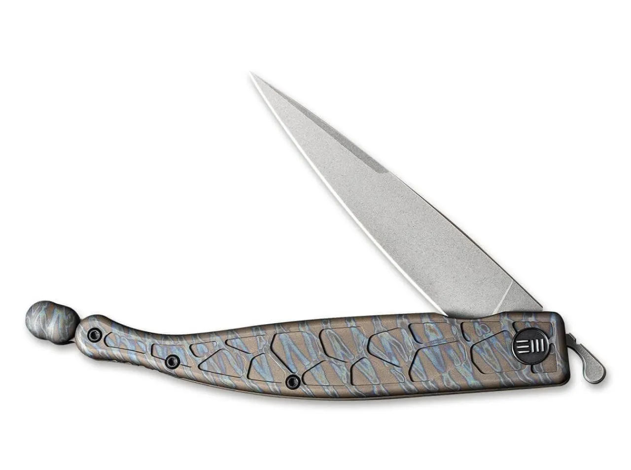 Based On The Via Appia Antica, A Strategic Road Through The Roman Empire, The We Knife Roman Flame Presents Itself As A Proud Tribune. The Robust Blade Made Of Imperialist Cpm-S-35Vn Is Eagerly Awaiting Its Next Excursion Through Everyday Cutting Tasks, Relying On Its Faithful Legion Of A Flipper And A Framelock. The Triumvirate Is Supported By The Textured Titanium Handle With A Flame Pattern, Which Beautifully Picks Up The Stone Pattern Of The Via Appia Antica And Thus Lies Securely In The Hand. Without A Clip.