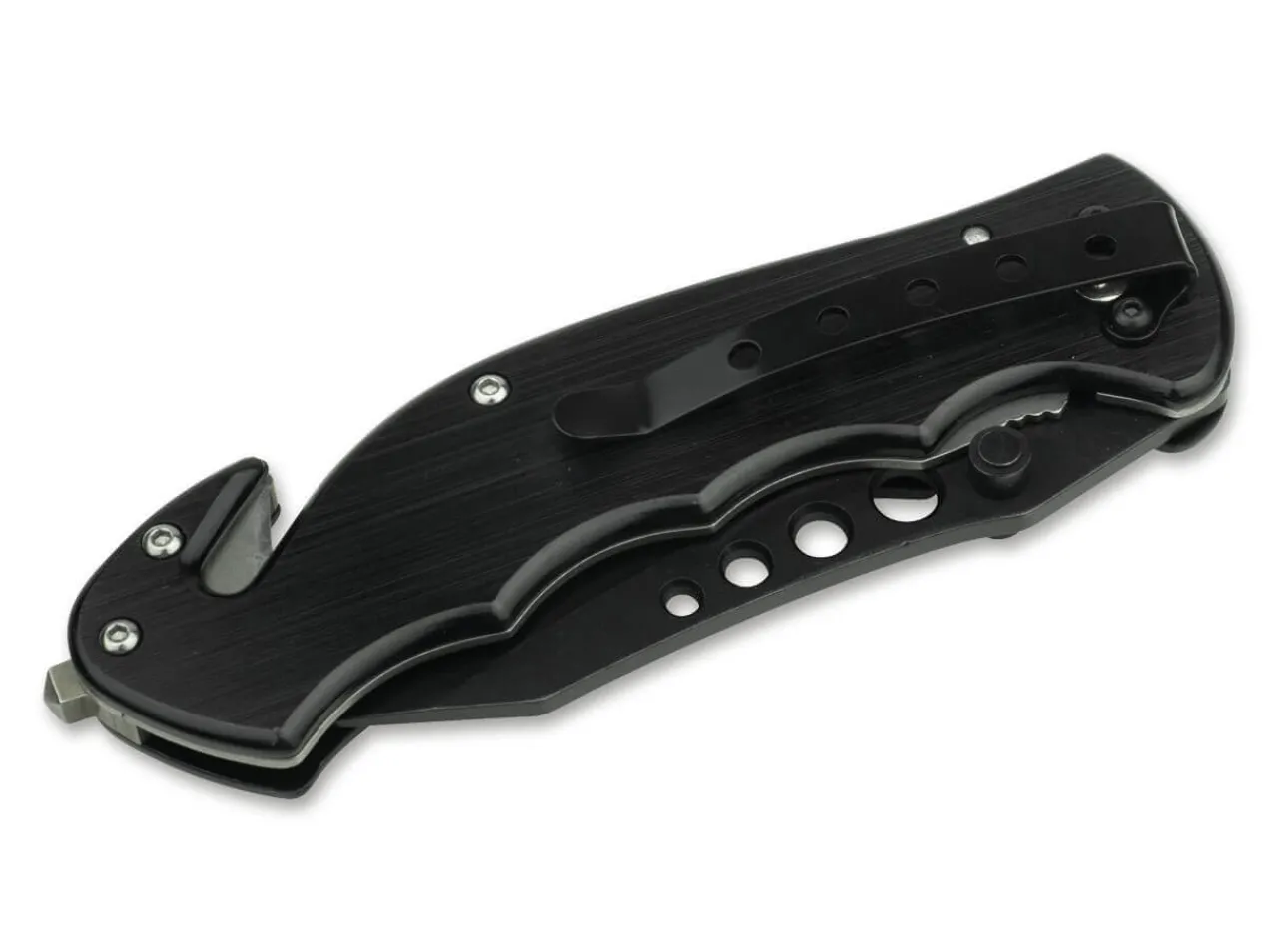 The Functional Rescue Knife Magnum Special Forces Is Dedicated To The World-Famous Special Force Of The American Armed Forces. The Black Coated Aluminum Handle Carries An Emblem With The Crest Of The Special Forces. The 440A Stainless Steel Blade Is Locked By A Linerlock Mechanism. The Drillings Give The Blade A Very Attractive Touch And Reduce The Weight. Includes A Glass Breaker At The Handle End And A Belt Cutter. These Features Make The Knife A Perfect Piece Of Your Emergency Equipment. With Clip.