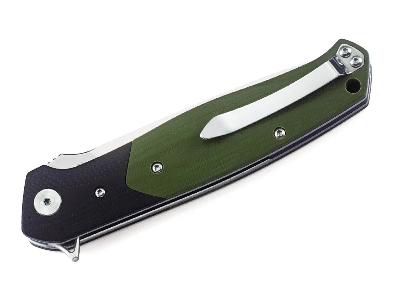 The Slim Bestech Swordfish Features A Two-Tone G10 Handle In Black And Green. The Robust D2 Blade Has A Pronounced Ricasso And Opens With A Flipper. A Sturdy Linerlock Secures The Blade. With A Lanyard Hole And Clip (Tip-Up).