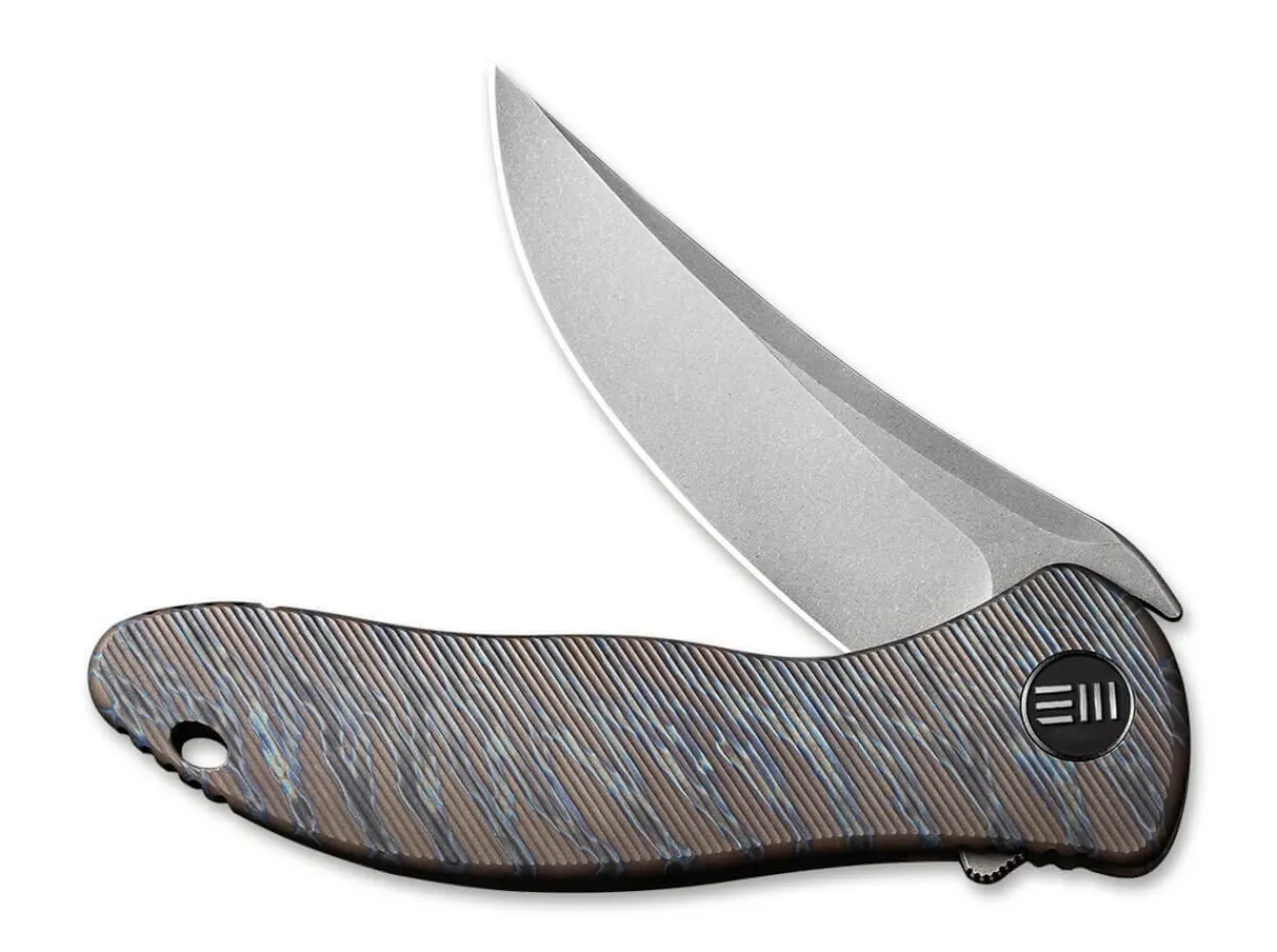 The Synergy 2 Titan Flame From We Knife Is The New Edition Of The Synergy, Which Won An Award At The Blade Show In 1999. For Its 20Th Birthday, This Revised Version Was Created In Cooperation With The Well-Known Designer Jim O’Young. The Ball-Bearing Blade Is Made Of Powder-Metallurgical Bohler M390 And Opens By Flipper. The Handle Is Made Of Elegant Titanium With A Flame Look. The Blade Bearing Cover, The Clip And The Screws Are Also Made Of Titanium. With A Clip (Tip-Up / R) And A Lanyard Hole.