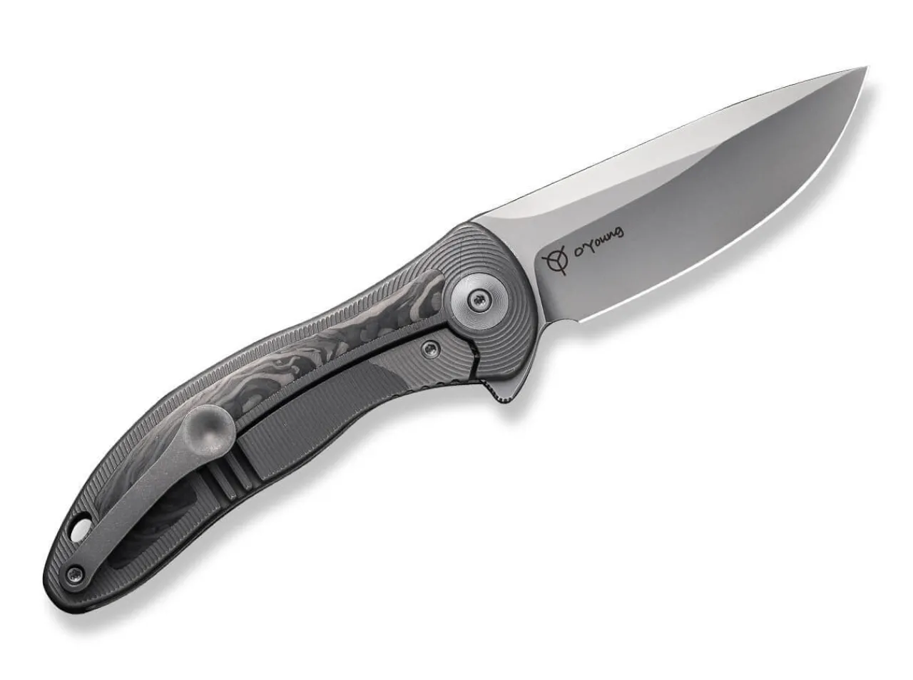 Synergy2V2 Titanium Grey Shredded Carbon|WE Knife Hot