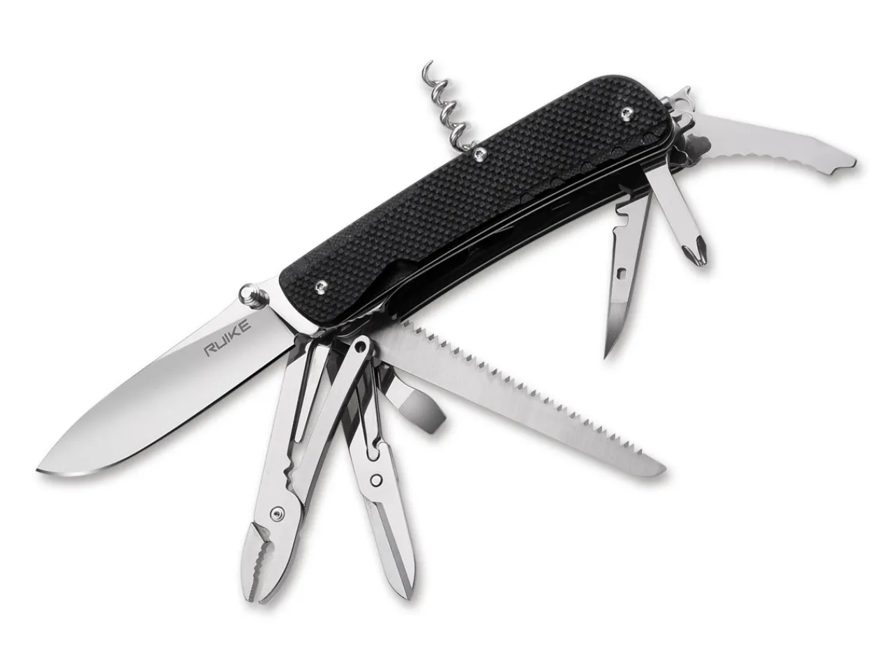 The Ld51 Is Part Of The Ld Series, Which Comes In Various Versatile Tool Combinations And Is Available In A Variety Of Styles To Meet The Most Varied Requirements. This Ld Pocket Knife Is Fitted With A Pocket Clip, Corkscrew, Can Opener, Screwdriver, Scraper, Bottle Opener, Wire Stripper, Wire Cutter, Key Ring, Small Screwdriver, Phillips Screwdriver, Wire Bender, Cutting Hook, Tweezers, Saw, Scissors, Pliers, Awl, And A Tungsten Steel Glass Breaker. The 8.5 Cm Long Sandvik 12C27 Stainless Steel Blade Can Be Opened Quickly And Easily With One Hand Via A Thumb Stud. The Textured, Black G10 Handle Sits Comfortably In The Hand For A Secure Grip.
