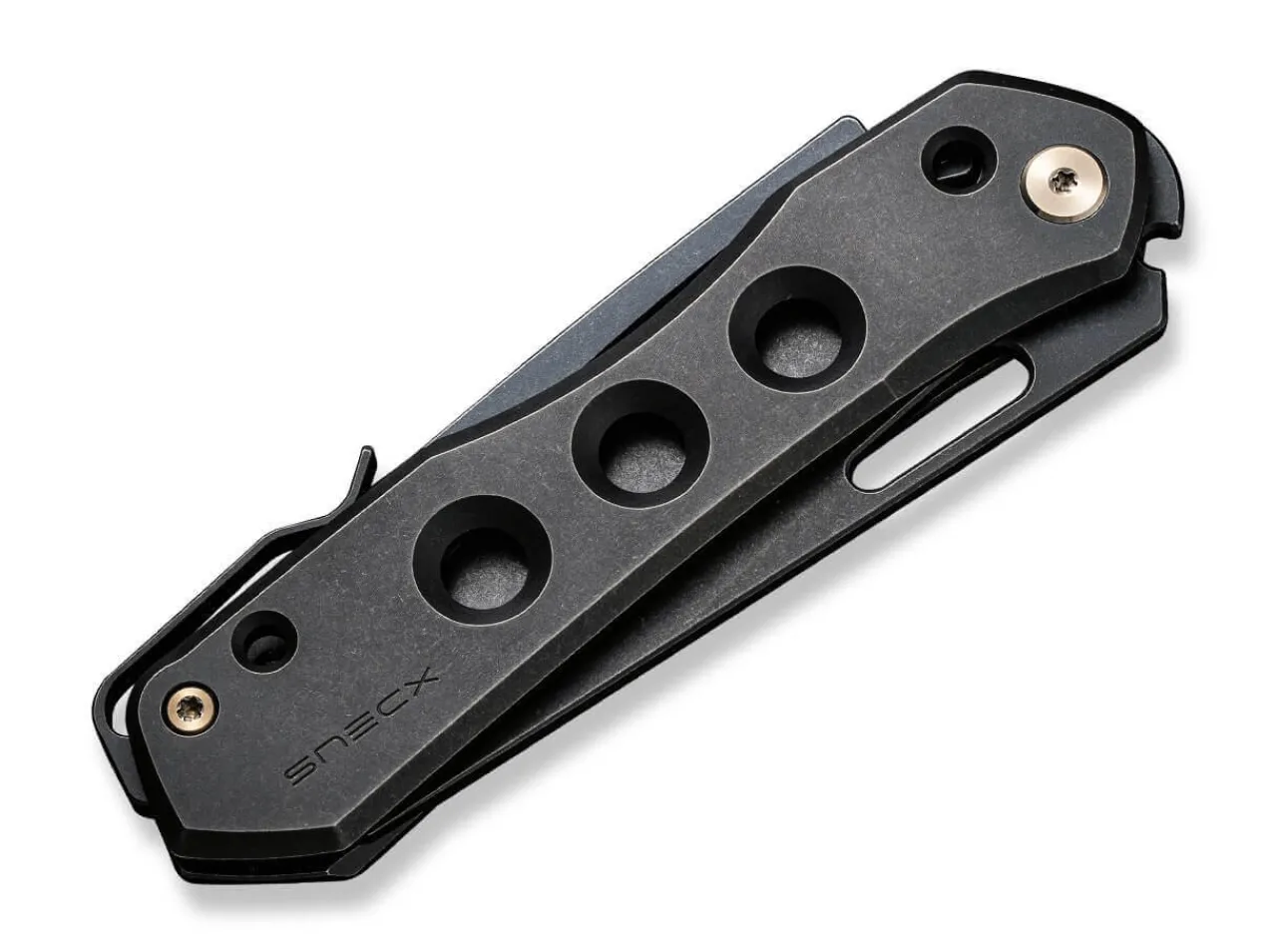 The Vision R Was Born From A Visionary Idea Of We Knife And Snecx Tan, Which Has Now Become A Steel Reality. The Avant-Garde And All-Black Edc Knife Is Equipped With A Ball-Bearing Reverse Tanto Blade Made Of Powder Metallurgy Cpm-20Cv, Which Has Excellent Cutting Capabilities. In Addition To The Weight-Reducing Holes In The Titanium Handle, The Generous Thumb Hole Continues The Appearance Of The Futuristic Knife In A Harmonious Manner. The Blade Is Secured By The Superlock Mechanism, Which Unlocks The Knife Again When The Lever On The Back Of The Blade Is Pulled Back. With Tip-Up Clip.